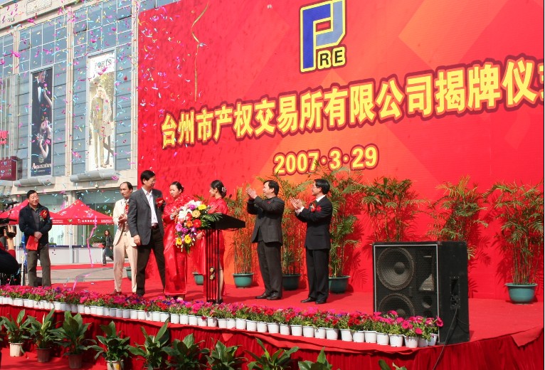 3月29日上午9時,臺州市產權交易所有限公司在新臺州大廈門前廣場舉行揭牌儀式,市政府徐小力副秘書長主持,市國資委林作民主任致辭,市政府葉建斐副秘書長,市產交所有限公司余敏富董事長發表熱情洋溢的講話,元茂榮副市長為臺州市產權交易有限公司揭牌.市國資委、財政局、工商局、招投標中心以及各縣市區的財政局、國資局等相關單位到場祝賀.